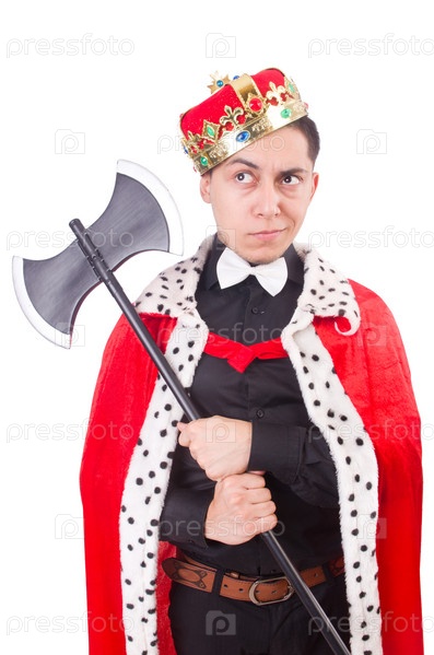 Смешной король с топором, изолированный на белом фоне