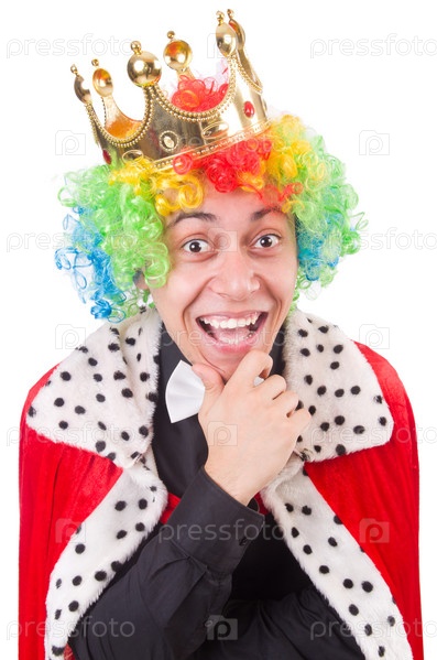 Смешной король с топором, изолированный на белом фоне
