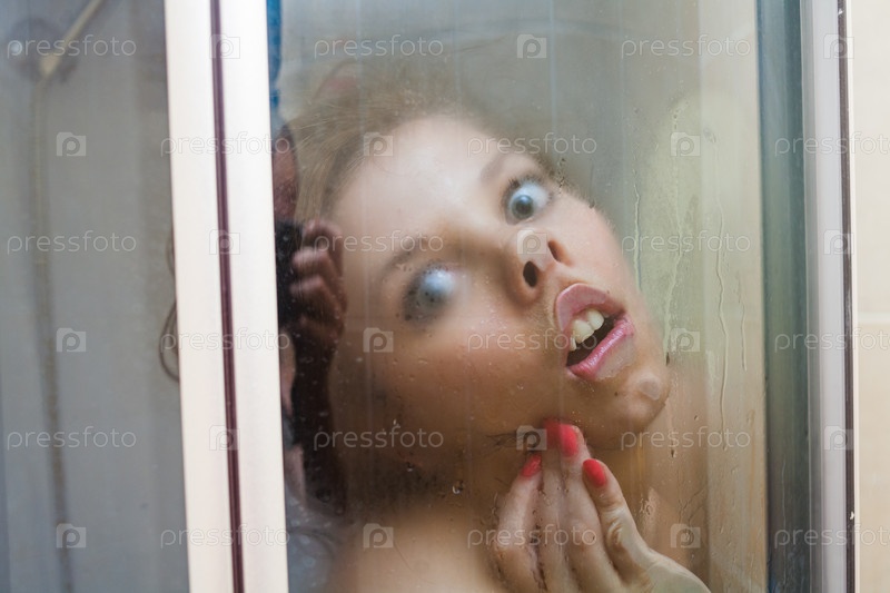 Красивая женщина за мокрым стеклом