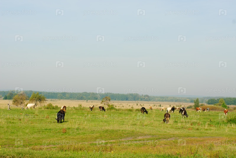 Коровы, пасущиеся на лугу