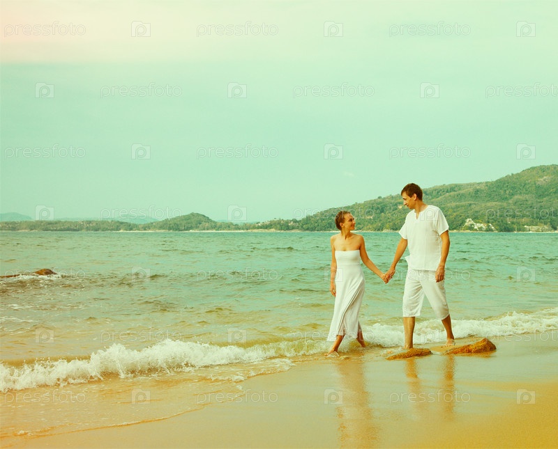 Винтажный портрет пары на пляже