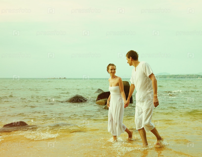 Винтажный портрет пары на пляже