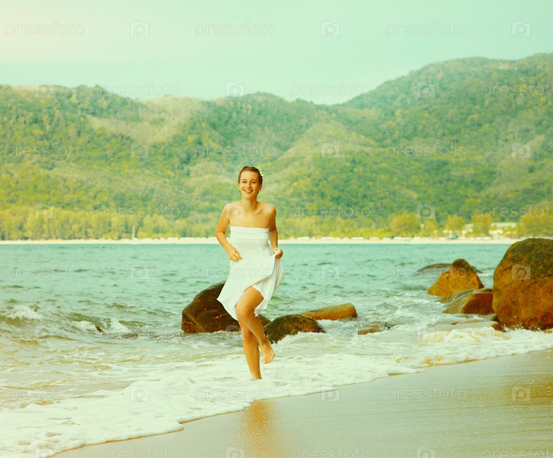 Девушка на пляже, тонированная фотография