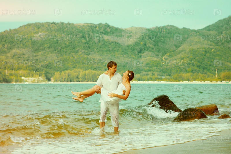 Винтажный портрет пары на пляже