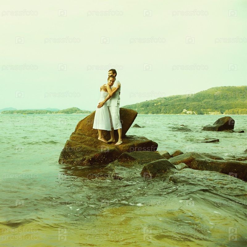 Пара на пляже, тонированная фотография