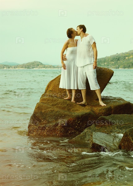 Пара на пляже, тонированная фотография