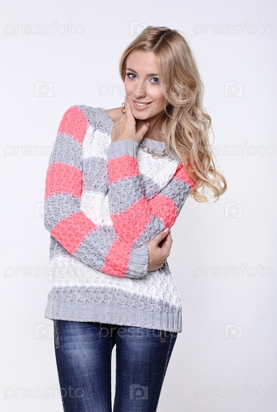 Блондинка в джинсах и свитере