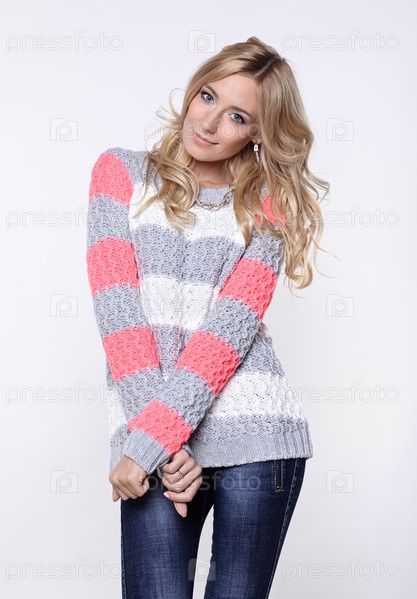 Блондинка в джинсах и свитере