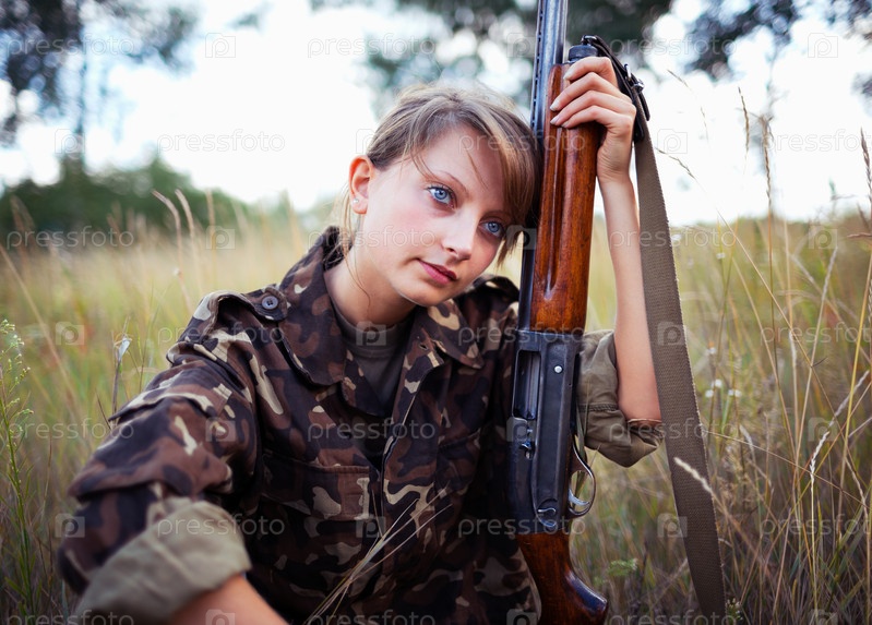 Красивая девушка с ружьем