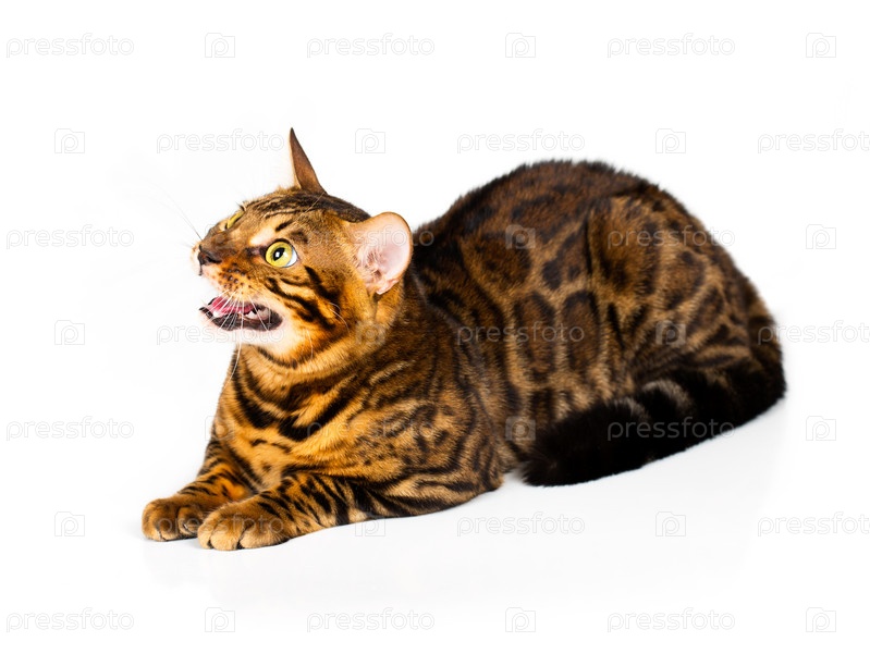 Бенгальская кошка на белом фоне