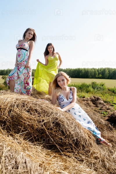 Молодые красивые женщины на сене