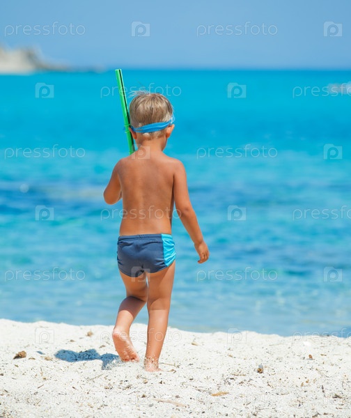 Милый мальчик с маской и трубкой