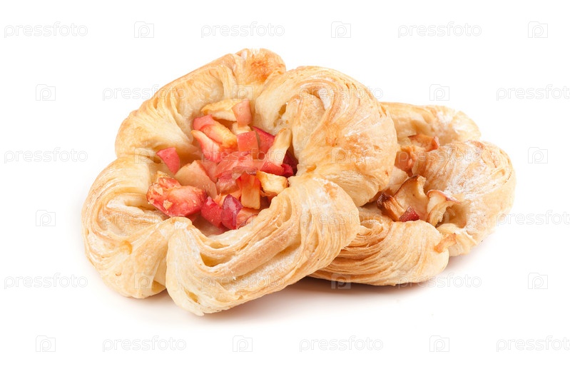 Булочка с яблоком, изолированная на белом фоне