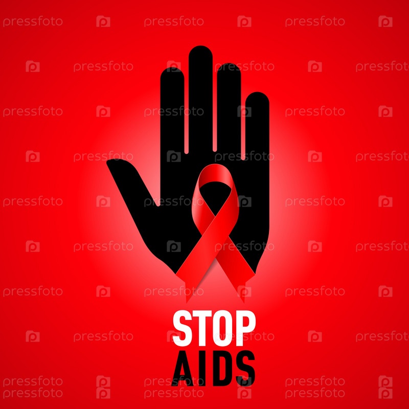 Остановите СПИД! Знак с черной ладонью и красной лентой на красном фоне