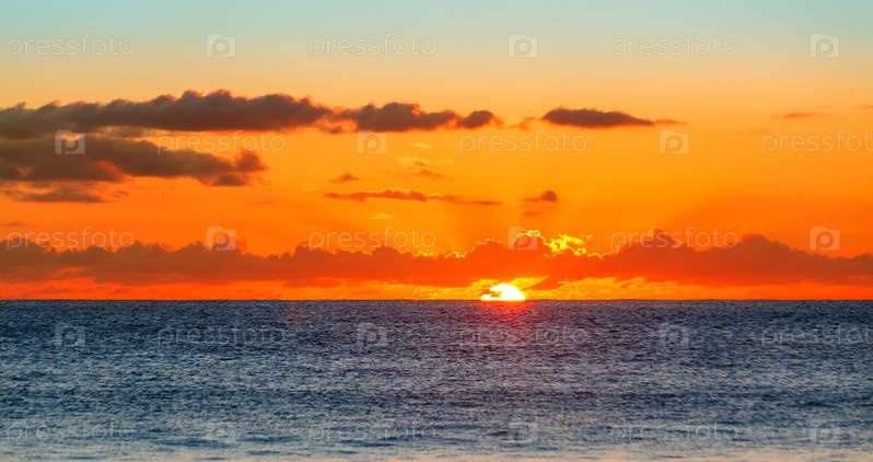 Закат над морем на Сейшельских островах Индийского океана