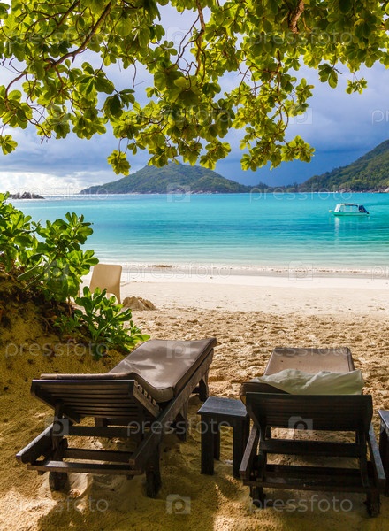 Лежаки на пляже на Сейшельских островах