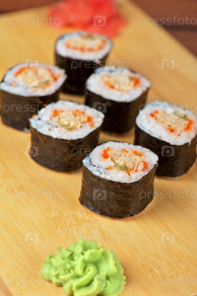 Суши роллы с летучей рыбой и блинами