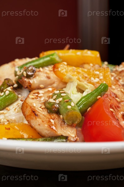 Теплый салат с курицей