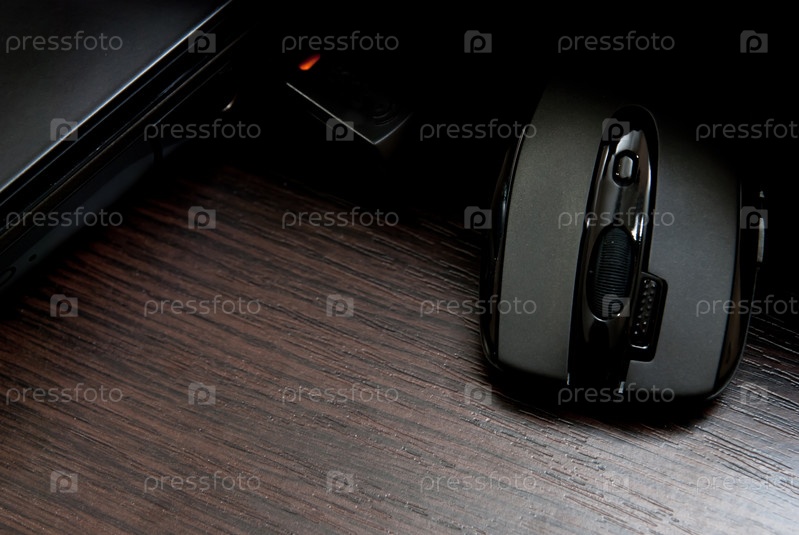 Черная компьютерная мышь на темном столе