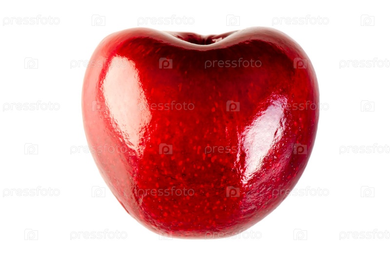Большая спелая вишня на белом фоне