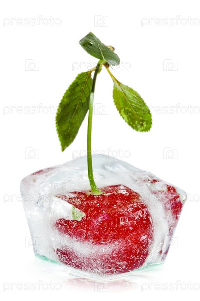Прозрачный лед и мороженая вишня внутри