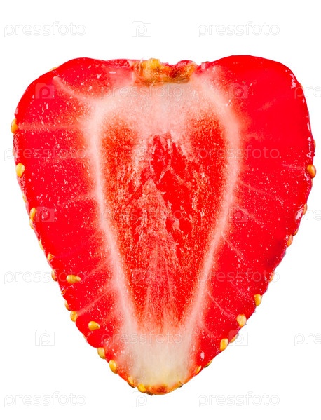 Половина клубники в форме сердца на белом фоне