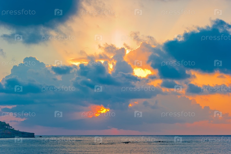 Живописный рассвет над морем в хорошую погоду