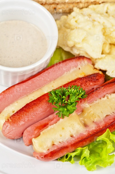 Сосиски с сыром и омлет