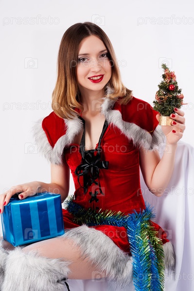 Красивая и сексуальная женщина с новогодним подарком