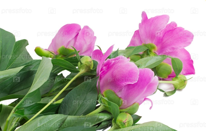 Цветы и бутоны пионов на белом фоне