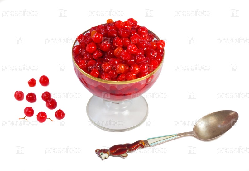 Ягоды калины в сиропе на белом фоне