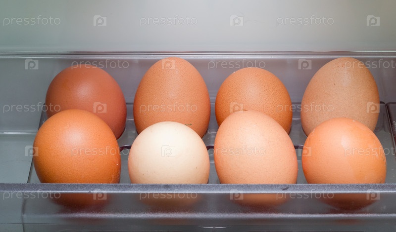 Яйца на полке холодильника