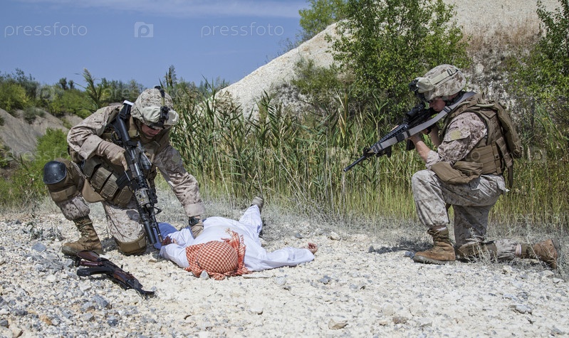 Солдаты и человек на земле
