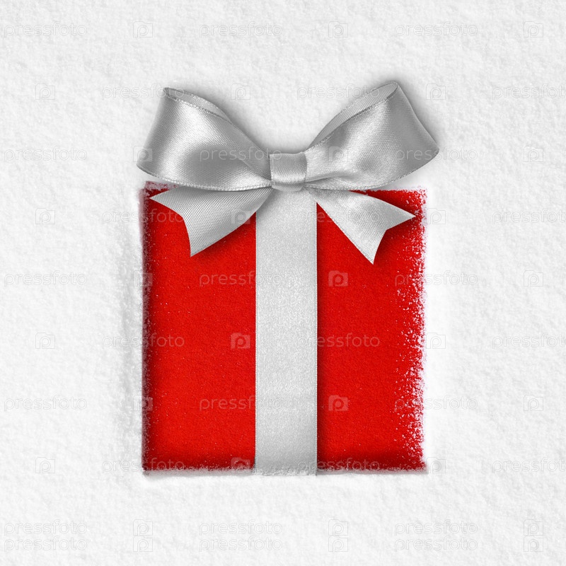 Подарок с бантиком на снегу