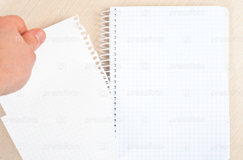 Рука отрывает лист бумаги из блокнота
