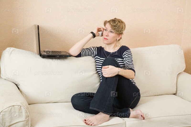 Женщина на диване разговаривает по телефону