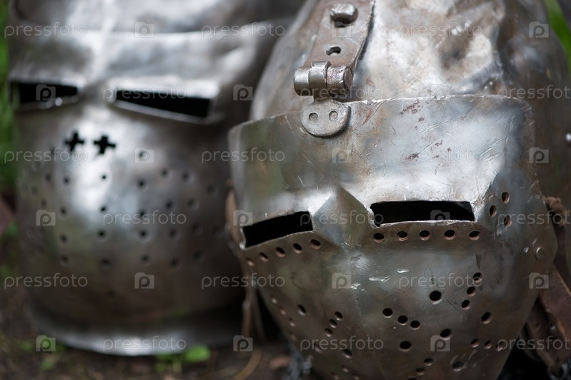 Два средневековых шлема крупным планом