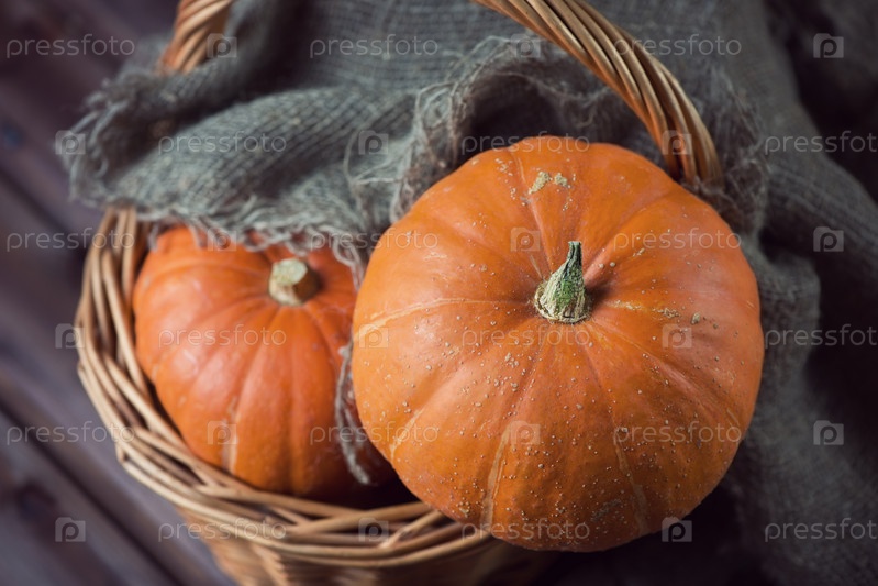 Корзина со спелыми тыквами, вид сверху