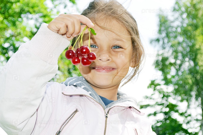 Маленькая девочка и вишни