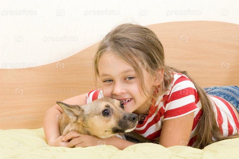 Девочка играет с собакой