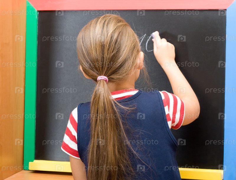 Ученик пишет цифру 10 мелом на доске