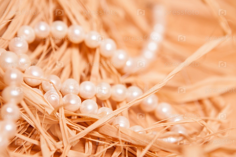 Новогодний фон с жемчугом и соломой в золотом тоне