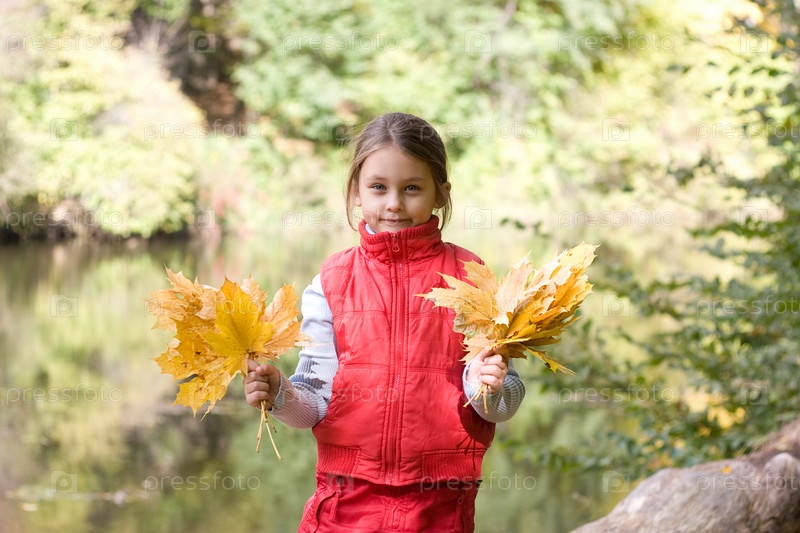 Девочка с осенними листьями