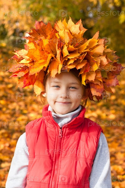Девочка с венком из кленовых листьев на голове