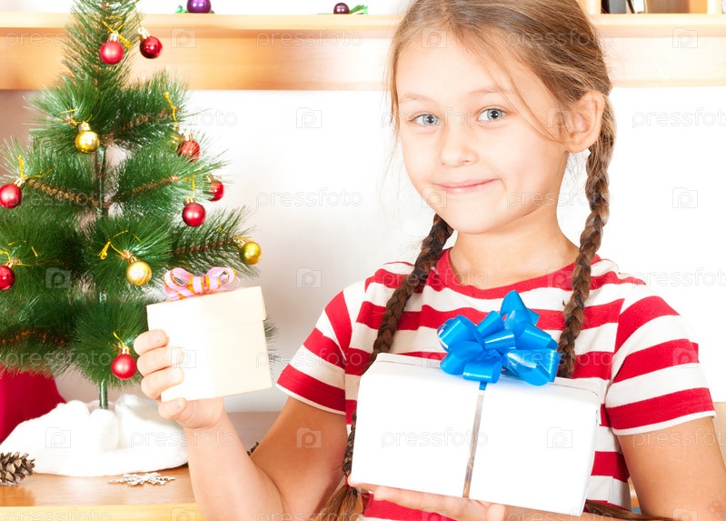Ребенок с двумя рождественскими подарками