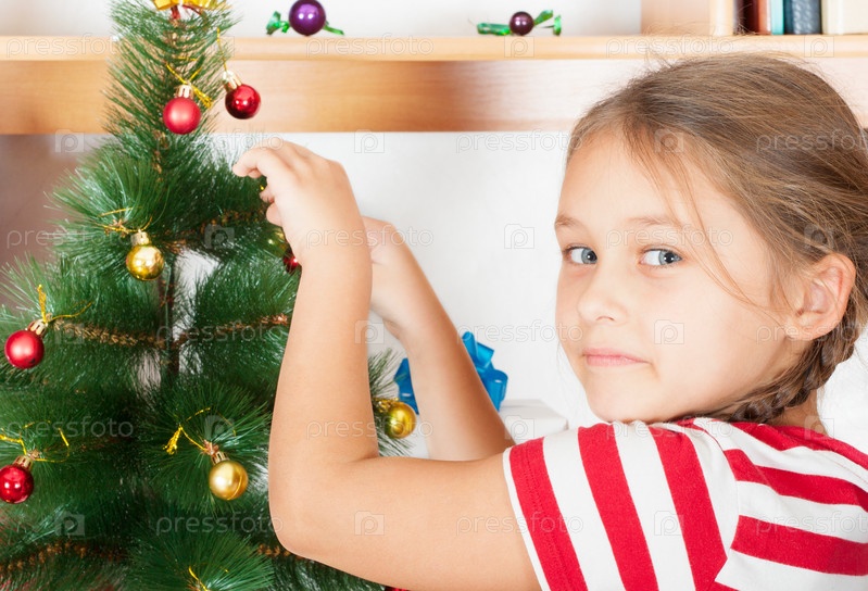 Ребенок украшает новогоднюю елку