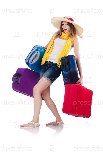 Женщина собирается на летние каникулы, изолированная на белом фоне