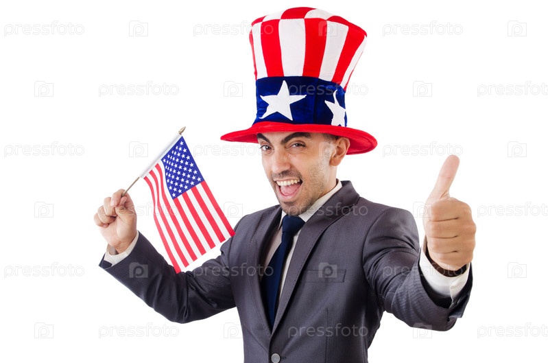 Мужчина с американским флагом и шляпой