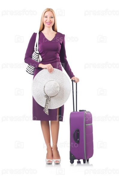 Женщина собирается на летние каникулы, изолированная на белом фоне