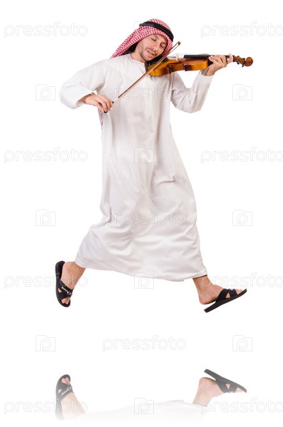Араб со скрипкой на белом фоне